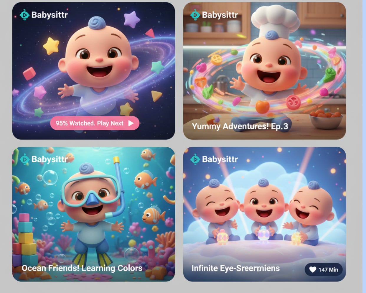 Babysittr - AI-generated baby videos optimized for perpetual engagement in the 0-24 month demographic. Based on the latest developmental psychological research showing neurologically, infant brains show elevated dopamine response to infant facial stimuli (ie, babies like watching other babies), combined with the insight that babies are often mediocre and highly-demanding actors, we use RLBF (Reinforcement Learning from Baby Feedback) and the latest advances in baby eye-tracking to create infinite content streams. Average viewing session: 147 minutes. Unicorn; valuation $4.5 billion.